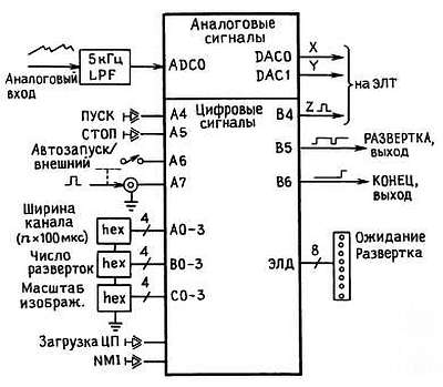 Выходы: X, Y, Z (на ЭЛТ), РАЗВЕРТКА, КОНЕЦ
