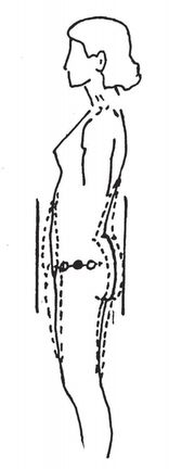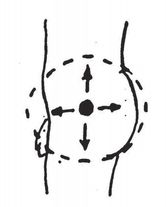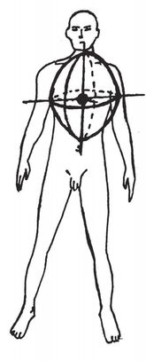 Теперь, сдвинув участок тела с родником вперед, соедините все четыре найденные вами точки одним движением. Постарайтесь добиться плавного свободного движения точки родника и соответствующего участка тела в пространстве по строго горизонтальной плоскости, как можно менее задействуя участки соседних центров.