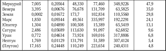 Гелиоцентрические оскулирующие (моментальные) элементы орбит планет для начала 2001 г. (JD = 2451920,5) по отношению к средней эклиптике и точке равноденствия эпохи]2000.0