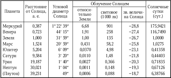 7. Условия солнечного облучения и средняя продолжительность солнечных суток на планетах