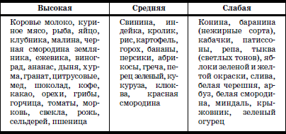 По степени аллергизирующей активности пищевые продукты можно разделить на три группы (табл. 55).