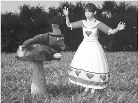 «Алиса терпеливо ждала, пока Гусеница не соблаговолит снова обратить на нее внимание. Минуты через две та вынула кальян изо рта..., сползла с гриба и скрылась в траве, бросив Алисе на прощанье: