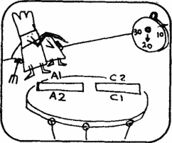 Нетрудно спланировать все операции так, чтобы 3 ломтика поджаренного хлеба с маслом были готовы за 2 мин. Но 9 с можно сэкономить, если вам удастся набрести на следующую счастливую идею: ломтик хлеба можно поджарить с одной стороны не до конца, затем вынуть из тостера и дожарить позже. При таком подходе время на приготовление 3 ломтиков поджаренного хлеба с маслом удается сократить до 114 с. Но даже для тех, кому удается подобрать ключ к решению, составление оптимального графика выполненных операций остается далеко не легкой задачей. Что же касается бесчисленных проблем на составление самых экономичных последовательностей операций в различных областях человеческой деятельности, то они требуют для своего решения сложных математических методов, обращения к ЭВМ и современной теории графов.