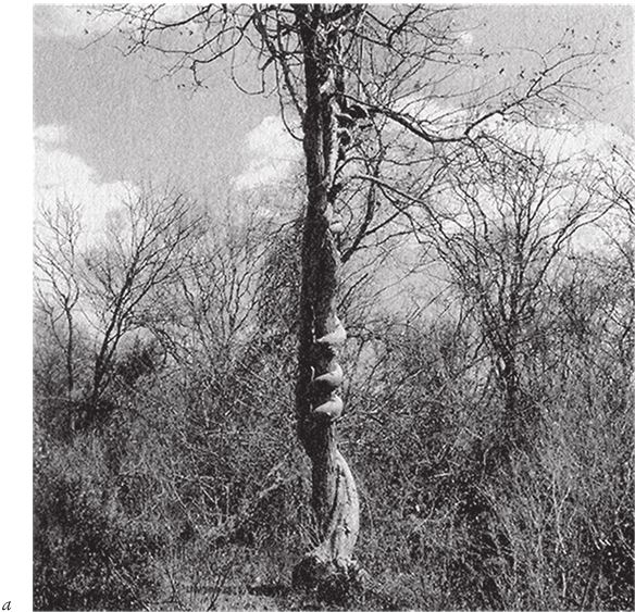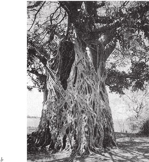 Рис. 10.3. (а) фикус-душитель; (b) баобаб, обвитый фикусом-душителем.