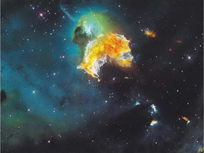 Ещё более грандиозное, но чрезвычайно редкое небесное явление, получившее название сверхновой звезды, запечатлено во многих исторических летописях разных народов. Блеск сверхновой, вспыхивавшей тоже вроде бы на пустом месте, иногда достигал такой величины, что звезду было видно даже днём! Если на её месте до начала вспышки и была заметна звезда (как, например, в случае ближайшей изученной сверхновой, наблюдавшейся в 1987 г. в Большом Магеллановом Облаке), то после вспышки она исчезает, а сброшенная ею оболочка ещё долгие годы видна как светящаяся туманность.