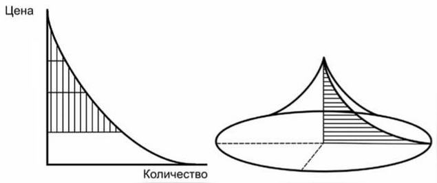 Рис.1 Построение конуса спроса и определение размера зон. По мере удаления от производителя цена возрастает — и спрос падает