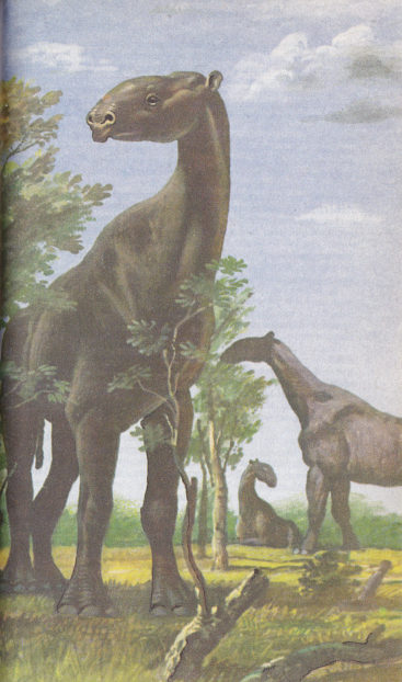 Индрикотерии — гигантские носороги олигоцена и раннего миоцена (по З. Шпинару и З. Буриану).