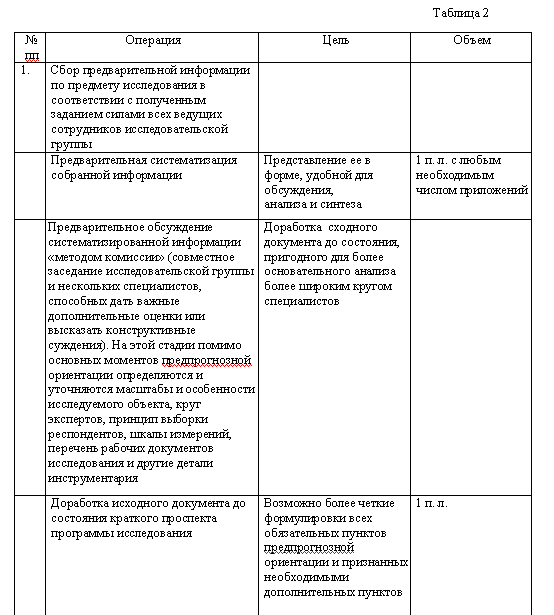 Программа прогностического социологического исследования – это документ, содержащий теоретические предпосылки, основные цели и задачи исследования, обоснованные методики сбора, обработки и анализа информации (см. табл. 2). Она предваряет все другие процедуры исследования и является необходимым его элементом, выполняя следующие функции: