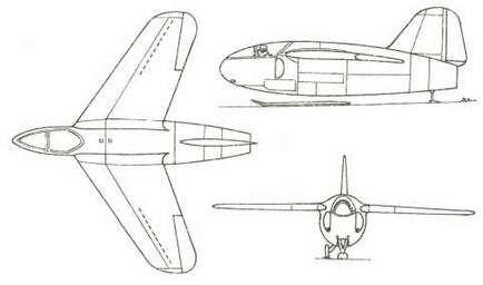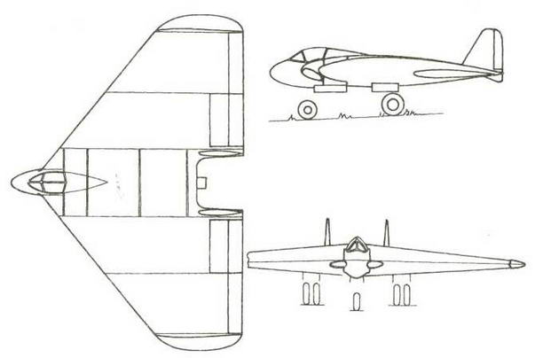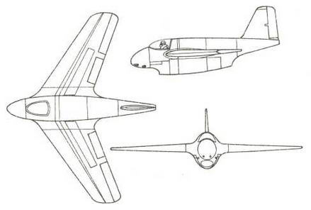 Когда Липпиш получил первую, еще неопределенную информацию о турбореактивном двигателе, в апреле 1939 г. возник эскиз маленького опытного самолета с носовым воздухозаборником небольшого удлинения, который напоминает об истребителе F-104 «Старфайтер».