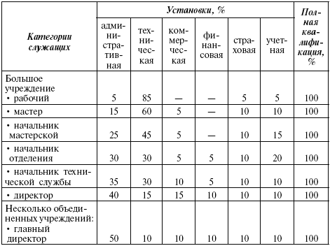 Файоль, как и Тейлор, выступал против сложившейся системы подготовки руководящих кадров, против излишнего акцента на развитии у них инженерно-технических навыков в ущерб собственно управленческим. Он полагал, что чем выше должностной ранг руководителя, тем меньше ему необходимы технические знания и больше – организационные. Поэтому руководителей надо учить администрированию, а не инженерным дисциплинам. Файоль одним из первых классифицировал персонал промышленного предприятия и с помощью разработанных им специальных установок попытался выделить приоритеты тех или иных квалификационных требований для каждой категории персонала (табл. 1.1).