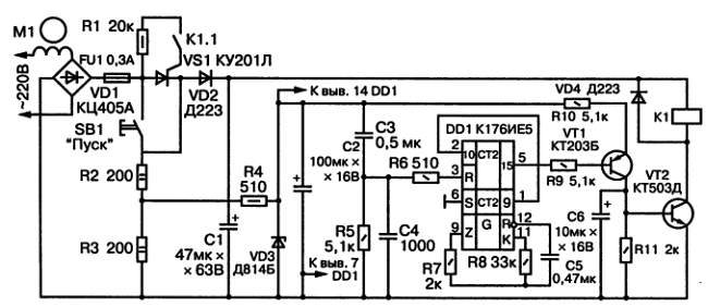 Рис. 33. Принципиальная схема таймера для управления вентилятором
