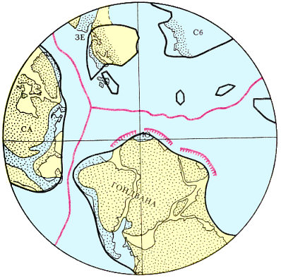 Ордовикский и силурийский периоды. В течение последующего ордовикского периода лик Земли и ее органический мир заметно преобразились. Размеры многих континентов и их положение на земной сфере претерпели существенные видоизменения. Лишь Гондвана в раннем и среднем ордовике сохранила прежние размеры и примерно то же местоположение. Как и ранее, существовали два крупных океана — палео-Атлантический и палео-Азиатский. По сравнению с кембрием увеличились площади эпиконтинентальных морей, располагавшихся на территории современной Австралии и Южной Америки.