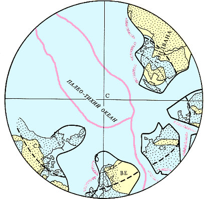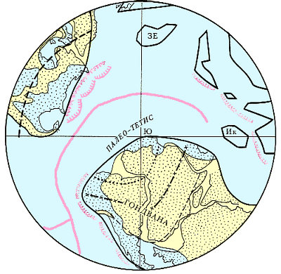 В северном полушарии происходили сближение Сибирского и Китайского континентов, временное замыкание южной части палео-Атлантического океана и формирование океана палео-Тетис. Последний отделял Лавразию от Гондваны.