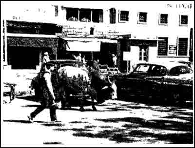 Тарахтят тонги и икки по мощеным и асфальтированным улицам; с дробным стрекотом катятся скутера; непрерывно звеня, маневрируют велорикши; оглушительно клаксоня, проталкиваются автомобили всех марок и выпусков; мчатся велосипедисты, не соблюдая никаких правил уличного движения (и ничего о них не зная), движется во всех направлениях густая, яркая, многоголосая толпа — такова обычная картина оживленной улицы индийского города. К тому же можно видеть и священных коров, которые то стоят в тени домов, то подбирают фруктовую кожуру, то лежат поперек улицы, то едят что-то у лотков торговцев зеленью.