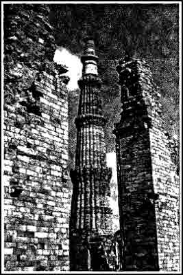 Почти рядом с этой удивительной колонной стоит и привлекающей всеобщее внимание и прекрасный памятник мусульманского зодчества — минарет в 72 м высоты. Он был воздвигнут в первой половине ХIII века и хранит в себе память о начале воцарения в Индии иноземных правителей. Внешняя его поверхность испещрена тонким орнаментом и изощренным рисунком надписей арабской вязью. И на этой же «строительной площадке» стоят сохранившиеся колонны индусского храма, которые тоже дышат глубокой стариной.