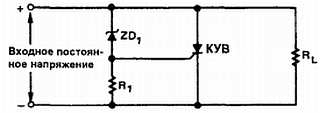 Если приложенное напряжение превышает напряжение стабилизации вследствие неправильной работы блока питания, стабилитрон начинает проводить. Это создает ток управляющего электрода КУВ, он открывается и закорачивает нагрузку. Необходимо заметить, что КУВ должен быть достаточно мощным для работы при большом токе короткого замыкания.