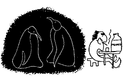 В мае самки пингвинов, отложив по одному яйцу, отдают его на попечение самцам. Клювом самка осторожно перекатывает снесенное яйцо со своих лап на лапы самца.