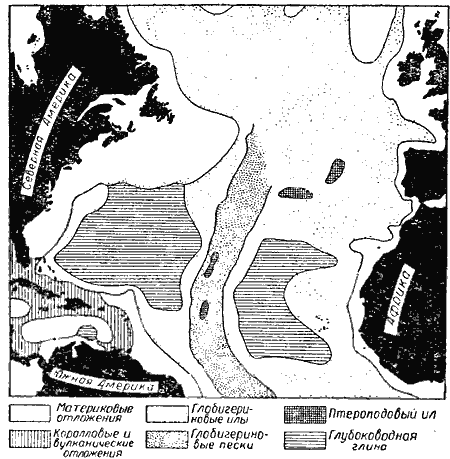 Рис. 6. Схематическая карта грунтов северной части Атлантического океана.