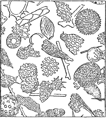 У некоторых морских животных твёрдые скелетные частицы — не известковые, а кремниевые. Таковы, например, радиолярии. Их скелеты имеют симметричное кружевное строение (рис. 7, стр. 14). Радиоляриевые илы особенно широко распространены в Тихом океане.