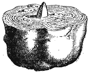 Рис. 8. Глубоководная железо-марганцевая конкреция в разрезе. Ядром её является зуб акулы.