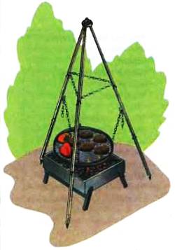 Впрочем, на жаровне для барбекю, что изображена на рисунке, можно готовить не только мясо, но и поджарить, к примеру, охотничьи колбаски, картошку, рыбу.