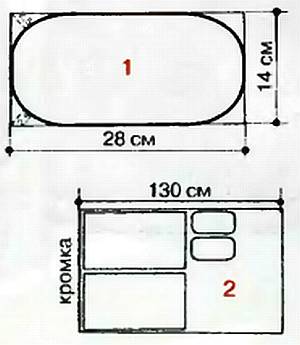 1 — чертеж донышка сумки; 2 — план раскладки сумки