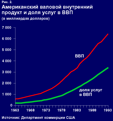 Отвлекаясь от доверчивого общественного мнения, уместно показать наглядно научную важность столь пристального внимания к патологической стороне расширения масштабов занятости в сфере услуг.