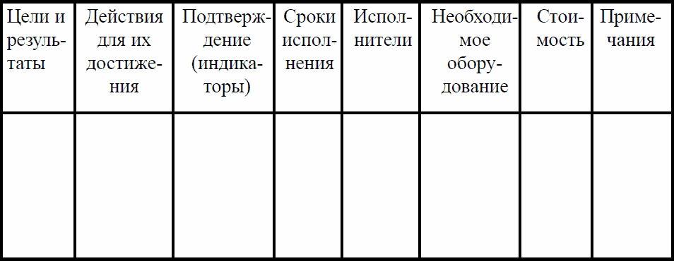 В четвертой части программы должны быть систематизированы некоторые материалы предыдущих разделов и возможно боле полно сформулированы пути и условия достижения целей и результатов проекта. Каждая из частей программы может быть представлена как таблица, содержащая, например, следующие данные.