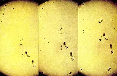 Движение солнечных пятен убеждает нас в том, что Солнце вращается вокруг своей оси.