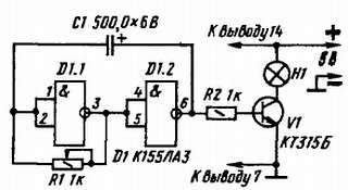 Рис. 304. Схема генератора световых импульсов с использованием логических элементов 2И-НЕ
