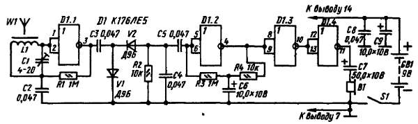 Рис. 308. Схема приемника прямого усиления на логической микросхеме