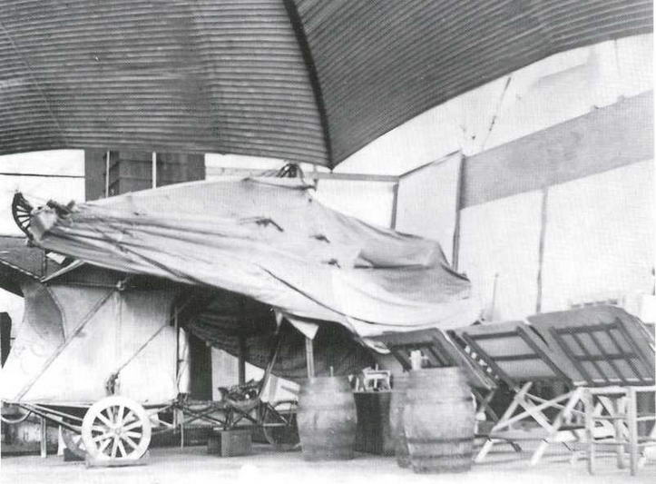 В мастерской К.Адера. Это единственная сохранившаяся фотография самолета «Эол» (показан со сложенным крылом). На переднем плане — крыло " Авиона-3".