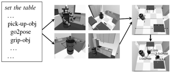 Эти исследования помогают сделать более интуитивным взаимодействие робота и человека. Как НотеСаге робот, когда он новенький входит в дом с фабрики и доставлен на дом, обучается освоению в новом окружении? Согласно сценарию CoTeSys, он остается сначала пару дней на кухне, чтобы изучить, что там происходит, где хранятся объекты, что необходимо поставить на стол для завтрака, и кто что ест на завтрак. Так робот учится накрывать стол для завтрака и затем убирать со стола. Для этого он должен идентифицировать домочадцев и их пристрастия. Если робот не знает, что такое «чашка», он входит в интернет и ищет среди картинок Google чашки, чтобы сравнить предметы. Или он входит в интернет, чтобы узнать, как сварить макароны (в интернете есть тысячи рецептов и инструкций их приготовления). В этом сценарии основной целью CoTeSys может быть придать техническим системам когнитивные функции и наглядно их пояснить: технические системы, которые планируют, решают, обучаются, защищены от неожиданностей – и могут сами себя информировать.