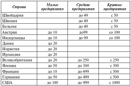 Интернациональные стандарты разделения предприятий по численности занятых (человек)
