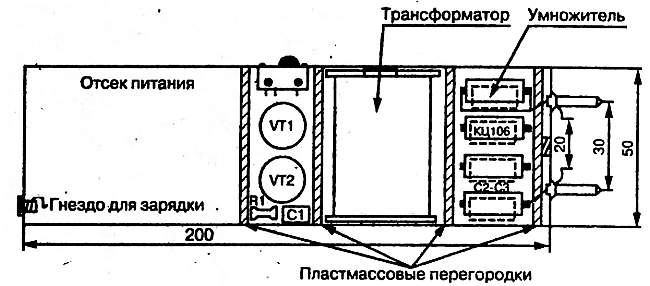 Рис. 6. Размещение элементов схемы в корпусе электрошокера
