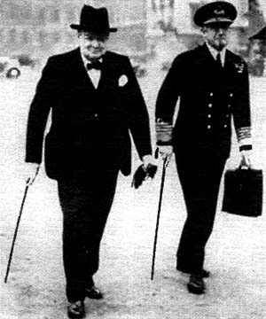 Уинстон Черчилль (первый лорд британского Адмиралтейства с 3 сентября 1939 года по 10 мая 1940 года, затем премьер-министр Великобритании) и Альфред Дадли П.Р. Паунд (первый морской лорд с 12 июня 1939 года по 15 октября 1943 года).
