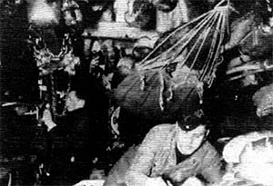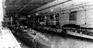 Погрузка торпеды в носовой отсек подводной лодки. Характеристики стандартных немецких торпед: длина 7,17 м, диаметр — 533 мм, вес — 1536 кг. Обычное вооружение подводных лодок VII и IX серий — 10 торпед.