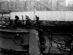 Немецкая подводная лодка U74 под командованием Эйтеля Фридриха Кентрата возвращается на базу после удачного патрулирования.