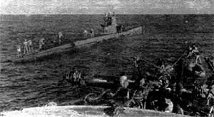 Захваченная англичанами 9 мая 1941 года немецкая подводная лодка U110. Лодка затонула, не дойдя до английского порта.