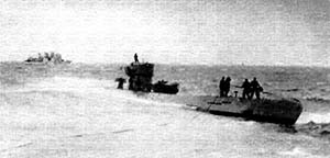 Немецкая подводная лодка VII серии на патрулировании в Северной Атлантике.