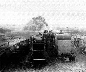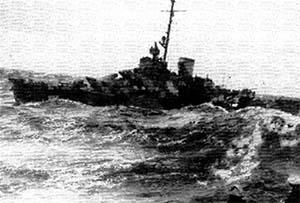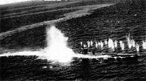 Корабль морской пограничной охраны «Спенсер» атакует немецкую подводную лодку U175.