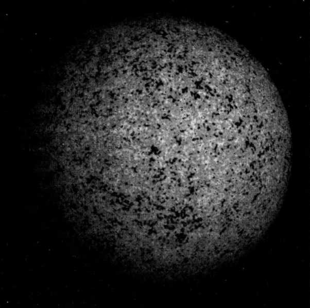 Впервые карту микроволнового неба построила команда эксперимента СОВЕ в 1992 году. Более подробная карта, которую получил 10 лет спустя спутник WMAP[30], представлена на рисунке 4.2. Темные оттенки серого соответствуют более высокой интенсивности излучения, однако разница между светлыми и темными пятнами составляет всего несколько стотысячных. Это означает, что во время последнего рассеяния Вселенная была почти идеально однородной. Все восхитительные структуры, которые мы сегодня видим на небе, были закодированы в этой аморфной ряби почти однородного космического фона.