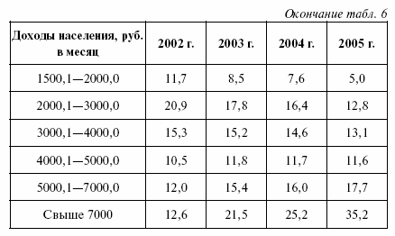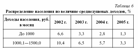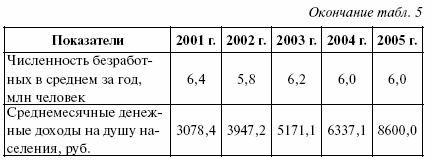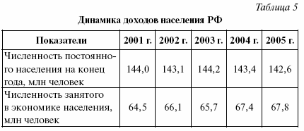 Также можно проследить динамику доходов населения РФ с 2001 по 2005 гг. (см. табл. 5)