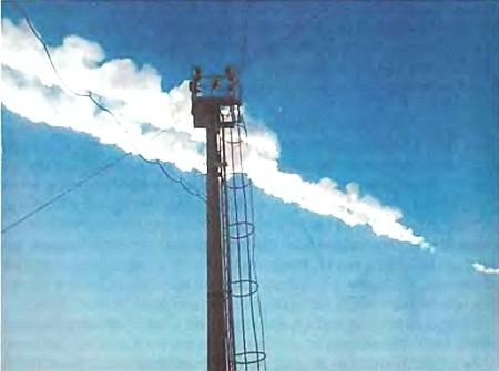 Напомним вкратце: 15 февраля, в 9 часов 20 минут по местному времени, в небе над Челябинском внезапно появился белый шар, очень быстро летевший, снижаясь, в южном направлении. При этом он светился так ярко, что камеры наблюдения засвечивались, в них ничего не было видно.