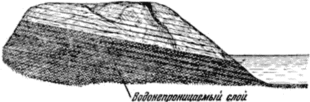 Рис. 2. Достигая слоя глины, вода течёт по его скату.