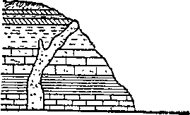 Рис. 6. Жила массивной горной породы, заполнившая трещины в слоях осадочных пород.