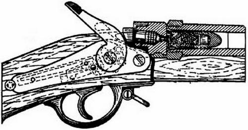 Затвор ружья был прост, так как ствол с ним соединяет сама гильза, ударник проще и прочней иглы игольчатых ружей. Закраина гильзы прочно закрепляла ее в патроннике, что избавляло от осечек. Металлические патроны герметичны и долговечны. Опасения появления в них «гальванического тока» не оправдались. Им можно придавать любую форму (коническую, цилиндро-коническую, бутылочную)[219]. Все эти качества металлического патрона свидетельствовали о его явном преимуществе над бумажным патроном игольчатого ружья, давно уже утратившем свое единственное достоинство — простоту устройства и возможность «изготовления в войсках».