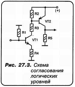 «С»: Во-первых, лучше всего применить согласователь уровней. Дело в том, что уровни ТТЛ и ТТЛШ такие: логическая «1» — не менее 2,4 вольта, а логический «0» — не выше +0,8 вольта. Это при стандартном напряжении питания +5 вольт!