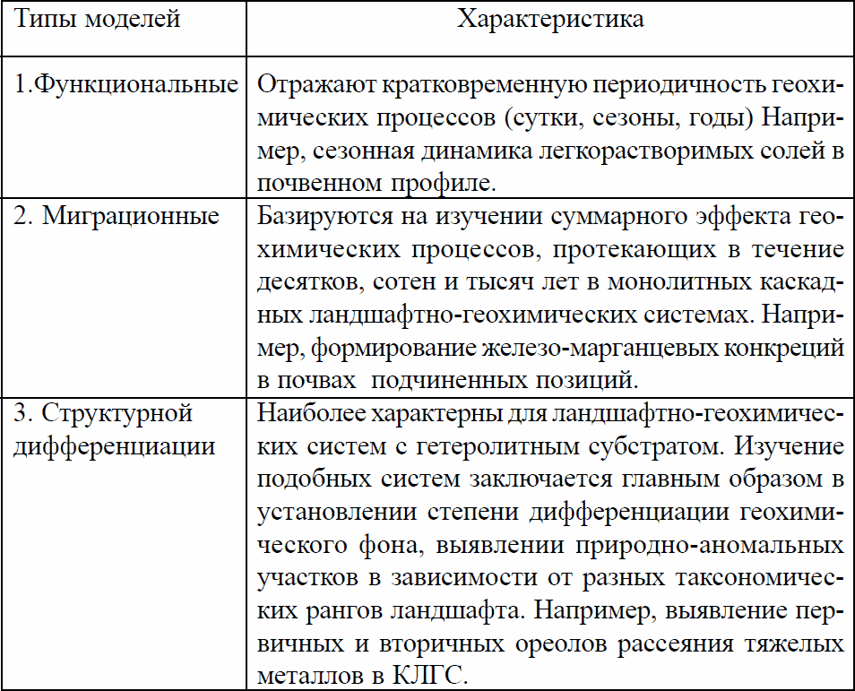 ТАБЛИЦА 10. Ландшафтно-геохимические модели