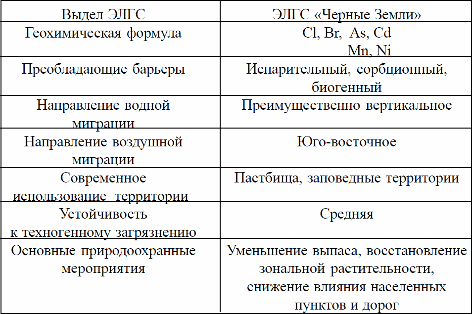 ТАБЛИЦА 12. Геохимическая оценка современного экологического состояния ЭЛГС «Черные Земли» (Республика Калмыкия)